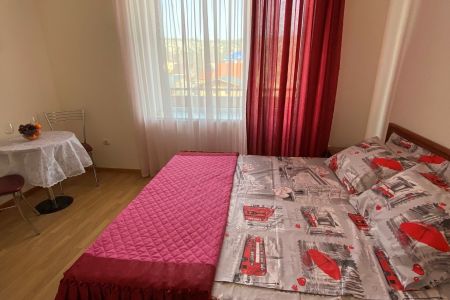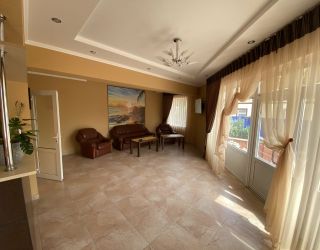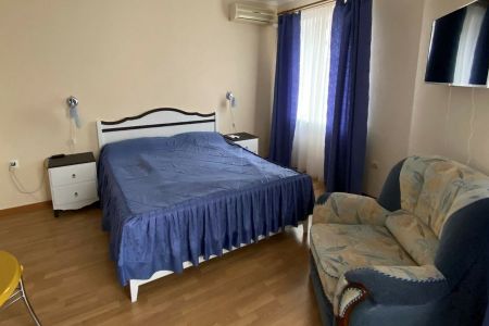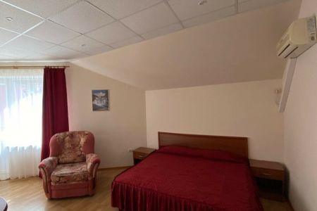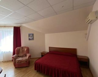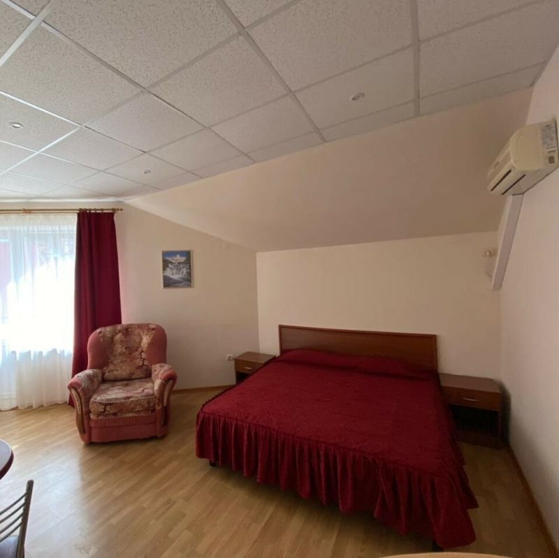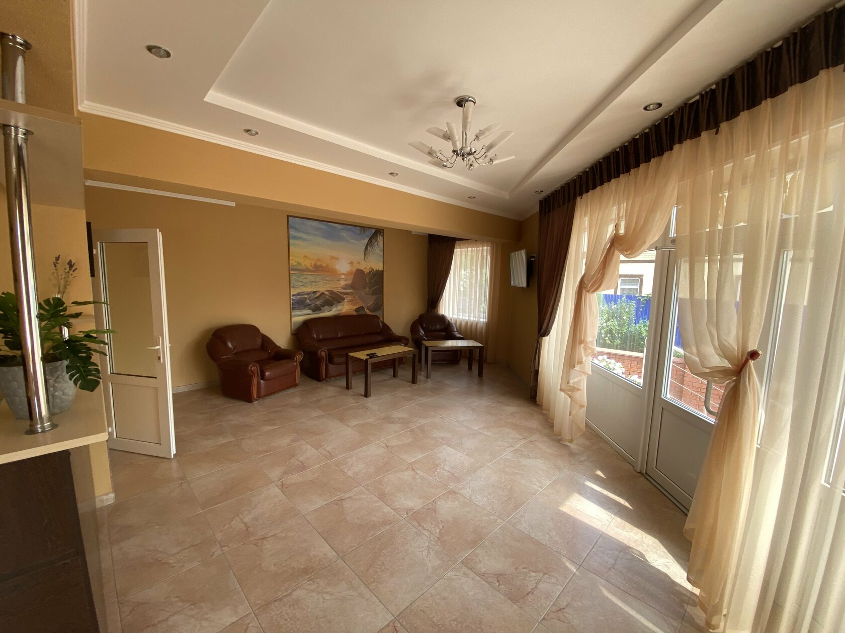 Трехэтажный корпус гостевого дома разместился на закрытой охраняемой территории. В распоряжении гостей номера со всем необходимым. Во всех номерах есть ванная комната с душем, гостиная зона и необходимая техника — кондиционер, телевизор, холодильник.